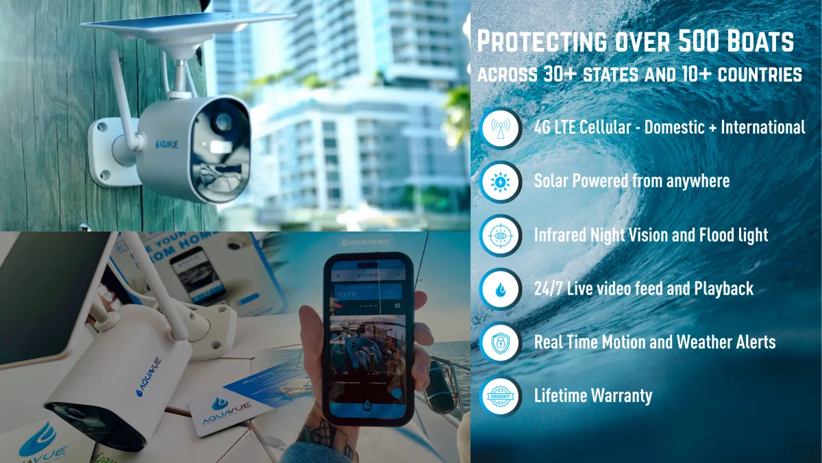 The Solace 4G Camera by Aquavue is available for $189.99, with a $24.99/month 4G data plan, the camera requires a connectivity plan, similar to a cell phone, to support its unlimited 4G data needs. This ensures seamless transmission of high-quality 4K images over cellular networks. As we refine and enhance this cutting-edge product, we invite testers to enjoy top-tier security equipment while covering only the data plan. It’s a win-win: you get the latest in marine surveillance technology, and we gain invaluable real-world feedback!